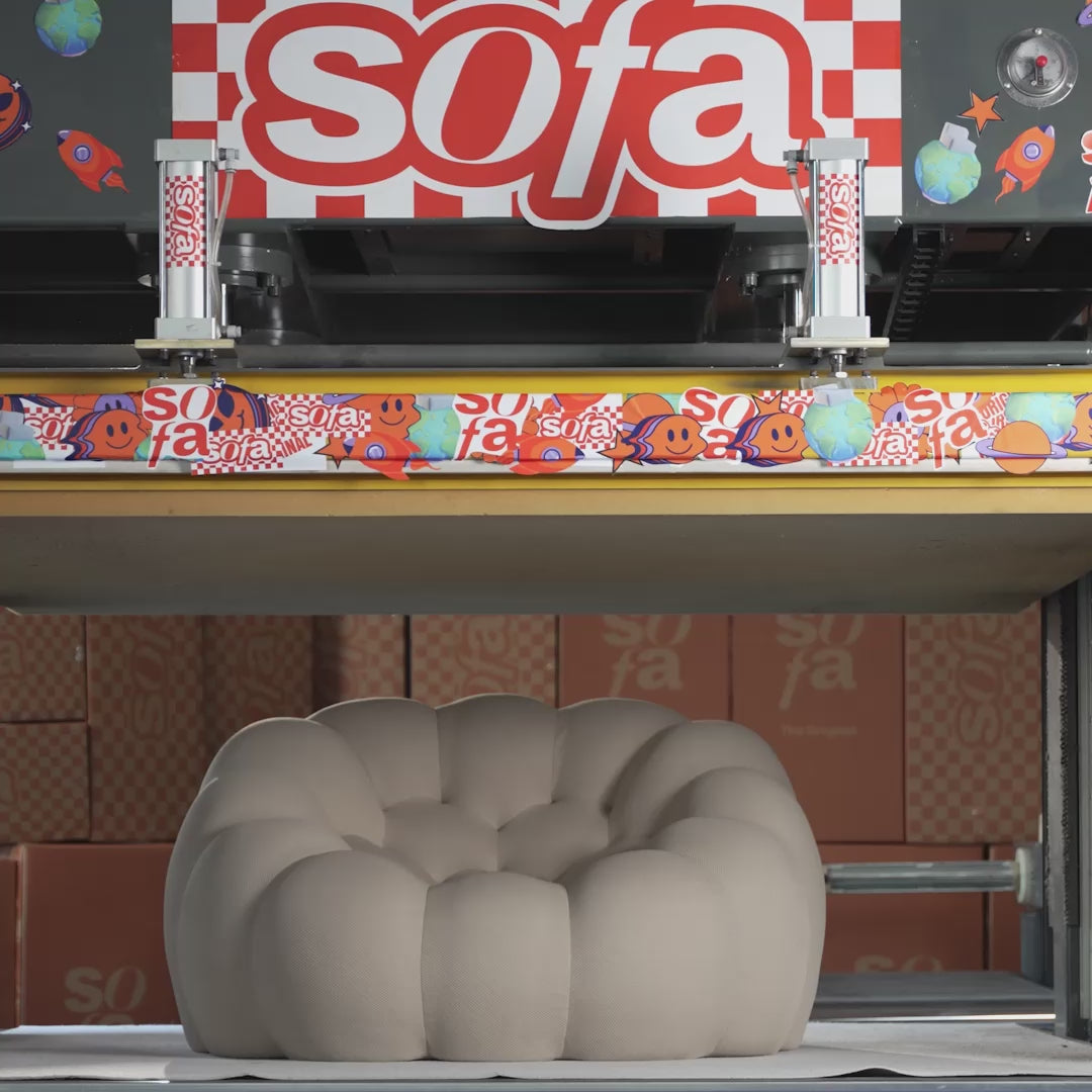 The foam in the Sofa-in-a-Box is designed with expansion molecules that, through the release of negative forces, enable the sofa to contract and expand.